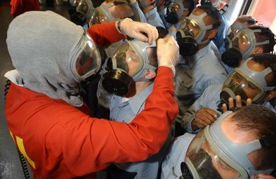 | Keywords: US Navy 030509-N-5862D-151 Navy instructor, Damage Controlman 2nd Class Shawn Love, adjusts a recruit^rsquo,s gas mask during Chemical, Biological and Radioactive (CBR) Defense training.jpg en Recruit Training Command Great Lakes Ill May 9 2003 -- Navy instructor Damage Controlman 2nd Class Shawn Love adjusts a recruit s gas mask during Chemical Biological and Radioactive CBR Defense training at the Fire Fighting Training Unit FFTU Recruit Training Command Great Lakes The recruits are exposed to an atmosphere of tear gas while donning their masks The staff then has the students remove their masks and recite their names and social security numbers This training teaches the recruits that the gas mask works and builds confidence in the equipment and training if they are ever exposed to weapons of mass destruction The FFTU trains over 47 000 students in basic fire fighting and CBR defense annually U S Navy photo by Chief Photographer's Mate Chris Desmond RELEASED 2003-05-09 030509-N-5862D-151 Navy http //www navy mil/view_image asp id 7421 U S Navy photo by Chief Photographer's Mate Chris Desmond PD-USGov-Military-Navy Recruit Training Command Great Lakes Illinois Damage Controlman |