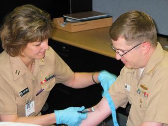 | Keywords: US Navy 030529-N-4096B-001 U.S. Navy Lt. Laura Hartjen releases a tourniquet band from the arm of Lt. Cmdr. Thomas Simpson after taking a blood sample.jpg en Newport R I May 29 2003 -- U S Navy Lt Laura Hartjen releases a tourniquet band from the arm of Lt Cmdr Thomas Simpson after taking a blood sample Naval Station Newport s Health Promotions Department is visiting Naval Reserve Readiness Command Northeast to draw fasting blood sugar and cholesterol specimens from participating personnel U S Navy photo by Journalist 1st Class Steve Bansbach RELEASED 2003-05-29 030529-N-4096B-001 Navy http //www navy mil/view_image asp id 7801 U S Navy photo by Journalist 1st Class Steve Bansbach PD-USGov-Military-Navy Naval Station Newport Tourniquets |