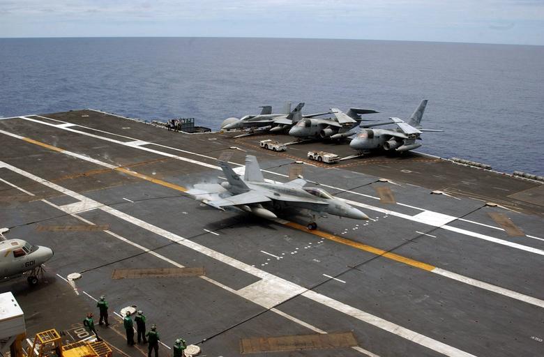 | Keywords: US Navy 030602-N-3241H-010 An F-A-18C Hornet makes the first arrested landing following a recently applied non-skid landing area in Apra Harbor, Guam.jpg  en Philippine Sea Jun 2 2003 -- An F/A-18C Hornet from the Black Knights of Marine Strike Fighter Squadron Three One Four VMFA 314 makes the first arrested landing following a recently applied non-skid landing area in Apra Harbor Guam The Carl Vinson Carrier Strike Group has been extended on deployment in the Western Pacific while Kitty Hawk is conducting scheduled maintenance at her forward-deployed operating location in Yokosuka Japan U S Navy photo by Photographer's Mate Airman Dustin Howell RELEASED 2003-06-02 030602-N-3241H-010 Navy http //www navy mil/view_image asp id 7886 U S Navy photo by Photographer's Mate Airman Dustin Howell PD-USGov-Military-Navy Aboard USS Carl Vinson CVN-70  |
