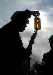 | Keywords: US Navy 030604-N-7902K-030 Gas Turbine System Technician 3rd Class Clayton Wheeler inspects the first of three samples to be collected from the diesel fuel marine (DFM) during an early morning Replenishment at Sea (RAS).jpg en Philippine Sea Jun 04 2003 -- Gas Turbine System Technician 3rd Class Clayton Wheeler inspects the first of three samples to be collected from the diesel fuel marine DFM during an early morning Replenishment at Sea RAS with the fast combat support ship USS Sacramento AOE 1 The DFM fuels the two 40 000 HP gas turbine engines for the guided missile frigate USS Ingraham FFG 61 Samples are collected at the beginning of the refueling to ensure the DFM meets quality control standards The ships are part of the USS Carl Vinson CVN 70 Strike Group on deployment in the Western Pacific Ocean U S Navy Photo by Photographer's Mate 2nd Class Jeremie Kerns RELEASED 2003-06-04 030604-N-7902K-030 Navy http //www navy mil/view_image asp id 7878 U S Navy Photo by Photographer's Mate 2nd Class Jeremie Kerns PD-USGov-Military-Navy Sample fueling-at-sea Gas Turbine System Technicians Aboard USS Carl Vinson CVN-70 |