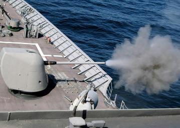 | Keywords: US Navy 030609-N-4374S-007 A cloud of propellant-gas discharge is expelled from the 5-inch gun aboard the aegis cruiser USS Vella Gulf (CG 72).jpg en Baltic Sea Jun 9 2003 -- A cloud of propellant-gas discharge is expelled from the 5-inch gun aboard the aegis cruiser USS Vella Gulf CG 72 during the annual maritime exercise Baltic Operations BALTOPS 2003 The United States and 12 other nations are participating in this year's exercise BALTOPS 2003 is intended to improve interoperability between allies and Partnership for Peace countries by conducting a peace support operation at sea including exercises in gunnery replenishment-at-sea undersea warfare radar tracking mine countermeasures seamanship search and rescue maritime interdiction operations and scenarios dealing with potentially real world crises U S Navy photo by Photographer s Mate 2nd Class Michael Sandberg RELEASED 2003-06-09 030609-N-4374S-007 Navy http //www navy mil/view_image asp id 7994 U S Navy photo by Photographer s Mate 2nd Class Michael Sandberg PD-USGov-Military-Navy 5 /54 caliber Mark 45 gun firing BALTOPS 2003 Aboard USS Vella Gulf CG-72 |