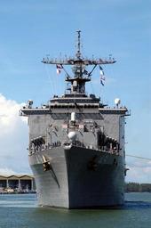 | Keywords: US Navy 030626-N-0493B-003 USS Harpers Ferry (LSD 49) gets underway.jpg en Muara Brunei Darussalam June 26 2003 -- The amphibious dock landing ship USS Harpers Ferry LSD 49 gets underway for the at-sea portion of the weeklong Brunei phase of exercise Cooperation Afloat Readiness and Training CARAT CARAT is a regularly scheduled series of bilateral military training exercises between the U S and several Association of Southeast Asian Nations ASEAN Harpers Ferry is forward deployed to Sasebo Japan U S Navy photo by Lt Chuck Bell RELEASED 2003-06-26 030626-N-0493B-003 Navy http //www navy mil/view_image asp id 8259 U S Navy photo by Lt Chuck Bell PD-USGov-Military-Navy Images from US Navy location Muara Brunei General views of USS Harpers Ferry LSD-49 |