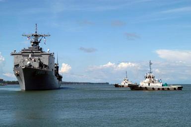 | Keywords: US Navy 030626-N-0493B-004 USS Harpers Ferry (LSD 49) gets underway.jpg en Muara Brunei Darussalam -- The amphibious dock landing ship USS Harpers Ferry LSD 49 gets underway for the at-sea portion of the weeklong Brunei phase of exercise Cooperation Afloat Readiness and Training CARAT CARAT is a regularly scheduled series of bilateral military training exercises between the U S and several Association of Southeast Asian Nations ASEAN Harpers Ferry is forward deployed to Sasebo Japan 2003-06-26 030626-N-0493B-004 Navy http //www navy mil/view_image asp id 8260 U S Navy photo by Lt Chuck Bell PD-USGov-Military-Navy Images from US Navy location Muara Brunei General views of USS Harpers Ferry LSD-49 Perapat Satu tugboat 1999 |