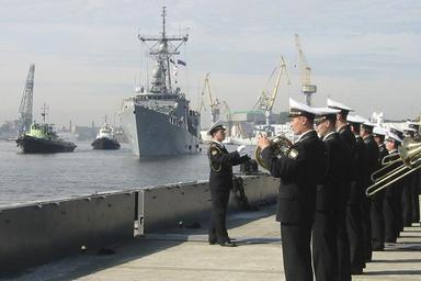 | Keywords: US Navy 030703-N-0000D-001 The guided missile frigate USS Nicholas (FFG 47) arrives pier side in St. Petersburg as a Russian Naval Band plays on the pier.jpg en St Petersburg Russia Jul 3 2003 -- The guided missile frigate USS Nicholas FFG 47 arrives pier side in St Petersburg as a Russian Naval Band plays on the pier The port visit included a Fourth of July observance and a birthday commemoration of U S and Russian naval hero Adm John Paul Jones solidifying ties between the two navies It was the first visit of a U S naval ship to the city since 1996 Embarked aboard Nicholas was Commander Sixth Fleet Vice Adm Scott A Fry John Paul Jones served as an Admiral for the Russian Navy after fighting in the Revolutionary War U S Navy photo by Lt Leonardo Day RELEASED 2003-07-03 030703-N-0000D-001 Navy http //www navy mil/view_image asp id 8436 U S Navy photo by Lt Leonardo Day PD-USGov-Military-Navy Images from US Navy location St Petersburg Russia USS Nicholas FFG-47 |