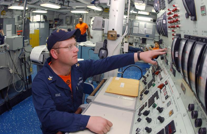View Original:US_Navy_030717-N-8273J-023_Gas_Turbine_System_Technician_Electrical_2nd_Class_Micheal_Rae_operates_the_main_engine_control_panel_in_the_Central_Control_Station_(CCS)_aboard_USS_Princeton_(CG_59).jpg (3008x1960)