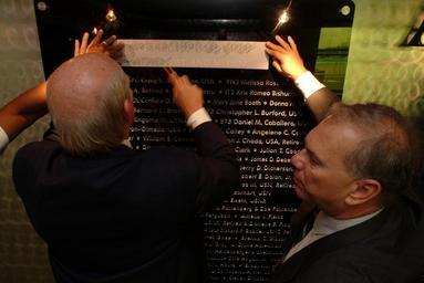 | Keywords: US Navy 030811-N-2383B-045 National Football League (NFL) Hall of Fame quarterback, Terry Bradshaw stencils writing on the wall to paper at the 911 Memorial for Americas Heroes inside the Pentagon.jpg en Arlington Va Aug 11 2003 -- National Football League NFL Hall of Fame quarterback Terry Bradshaw stencils writing on the wall to paper at the 911 Memorial for Americas Heroes inside the Pentagon as he is assisted by his public relations manager Mr Bill Futterer The Fitz-Bradshaw NASCAR Busch Race Team owned by Terry Bradshaw and Armando Fitz brought along NASCAR race driver Casey Atwood to the Pentagon for an autograph session and to promote their Navy sponsored team U S Navy photo by Chief Photographer's Mate Johnny Bivera RELEASED 2003-08-11 030811-N-2383B-045 Navy http //www navy mil/view_image asp id 9011 U S Navy photo by Chief Photographer's Mate Johnny Bivera PD-USGov-Military-Navy Terry Bradshaw Rubbings of gravestones America's Heroes Memorial |
