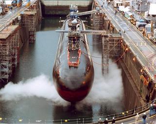 | Keywords: US Navy 030814-N-0000X-002 USS Ohio (SSGN 726) is in dry dock undergoing a conversion from a Ballistic Missile Submarine (SSBN) to a Guided Missile Submarine (SSGN) designation.jpg en Puget Sound Naval Shipyard Wash Aug 14 2003 -- USS Ohio SSGN 726 is in dry dock undergoing a conversion from a Ballistic Missile Submarine SSBN to a Guided Missile Submarine SSGN designation Ohio has been out of service since Oct 29 2002 for conversion to SSGN at Puget Sound Naval Shipyard Four Ohio-class strategic missile submarines USS Ohio SSBN 726 USS Michigan SSBN 727 USS Florida SSBN 728 and USS Georgia SSBN 729 have been selected for transformation into a new platform designated SSGN The SSGNs will have the capability to support and launch up to 154 Tomahawk missiles a significant increase in capacity compared to other platforms The 22 missile tubes also will provide the capability to carry other payloads such as unmanned underwater vehicles UUVs unmanned aerial vehicles UAVs and Special Forces equipment This new platform will also have the capability to carry and support more than 66 Navy SEALs Sea Air and Land and insert them clandestinely into potential conflict areas U S Navy file photo RELEASED 2003-08-14 030814-N-0000X-002 Navy http //www navy mil/view_image asp id 9051 U S Navy photo PD-USGov-Military-Navy Puget Sound Naval Shipyard in the 2000s USS Georgia SSGN-729 Dry docks in the United States Submarines in drydocks |