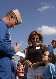 | Keywords: US Navy 030905-N-4459K-011 Lt. Cmdr. Todd Abrahamson autographs a T-shirt for a child.jpg en Naval Air Station NAS Oceana Virginia Beach Va Sep 5 2003 -- Lt Cmdr Todd Abrahamson assigned to the Navy s flight demonstration team Blue Angels autographs a T-shirt for a child at the 2003 Naval Air Station NAS Oceana Regional Air Show U S Navy photo by Photographer s Mate 2nd Class Anthony M Koch RELEASED 030905-N-4459K-011 Navy http //www navy mil/view_image asp id 9404 U S Navy photo by Photographer s Mate 2nd Class Anthony M Koch PD-USGov-Military-Navy 2003 Naval Air Station Oceana Regional Air Show White T-shirts |