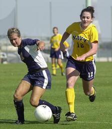 Keywords: US Navy 030907-N-9693M-004 Navy midfielder Ariana Downs tries to steal the ball from Drexler defender Jenna Carson during a soccer game at the U.S. Naval Academy's Glenn Warner Soccer Facility.jpg en U S Naval Academy Sep 7 2003 -- Navy midfielder Ariana Downs tries to steal the ball from Drexel University defender Jenna Carson during a soccer game at the U S Naval Academy's Glenn Warner Soccer Facility The Midshipmen defeated the Dragon's 5-2 with five second half goals bringing their 2003 record to 4-0 The Navy s women soccer team has gone 30 consecutive regular-season games without a loss They hope to mark a new NCAA attendance record for women's soccer when they host the 16-time national champion University of North Carolina Sept 26 at Navy-Marine Corps Memorial Stadium in Annapolis Md U S Navy photo by Photographer's Mate 2nd Class Damon J Moritz RELEASED 2003-09-07 030907-N-9693M-004 Navy http //www navy mil/view_image asp id 9418 U S Navy photo by Photographer's Mate 2nd Class Damon J Moritz PD-USGov-Military-Navy Photos taken with Nikon D1 United States Naval Academy athletics Drexel University athletics