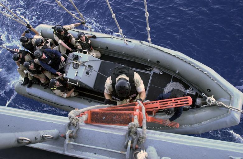 Keywords: US Navy 031014-N-1056B-010 A boarding team assigned to USS Nicholas (FFG 47) departs to board and inspect the French Frigate FS Jacouvet (F 754).jpg en Aboard USS Nicholas FFG 47 Oct 14 2003 -- A boarding team assigned to USS Nicholas FFG 47 departs to board and inspect the French Frigate FS Jacouvet F 754 Nicholas is participating in the Spanish-led SANSO 2003 phase of the Proliferation Security Exercise with armed forces from eleven countries The ten-phase exercise is a maritime interdiction operations training exercise which targets vessels simulating merchant vessels suspected of carrying weapons of mass destruction and their related delivery devices U S Navy photo by Lt Corey Barker RELEASED 2003-10-14 031014-N-1056B-010 Navy http //www navy mil/view_image asp id 10016 U S Navy photo by Lt Corey Barker PD-USGov-Military-Navy USS Nicholas FFG-47 Rigid-hulled inflatable boats |
