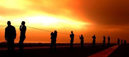 | Keywords: US Navy 031026-N-9769P-054 Flight deck personal aboard USS John C. Stennis (CVN 74) act as safety observers during steam catapult testing, under a cloud of smoke from nearby burning wildfires.jpg en Pacific Ocean Oct 26 2003 -- Flight deck personal aboard USS John C Stennis CVN 74 act as safety observers during steam catapult testing under a cloud of smoke from nearby burning wildfires Stennis and her embarked Carrier Air Wing Fourteen CVW-14 are at sea conducting Composite Training Unit Exercise COMPTUEX in preparation for an upcoming deployment The multiple fires have burned more than 300 000 acres of land and this catastrophic event is considered one the state's deadliest blazes in more than a decade U S Navy photo by Photographer's Mate 2nd Class Jayme Pastoric RELEASED 2003-10-26 031026-N-9769P-054 Navy http //www navy mil/view_image asp id 10300 U S Navy photo by Photographer's Mate 2nd Class Jayme Pastoric PD-USGov-Military-Navy Aboard USS John C Stennis CVN-74 |