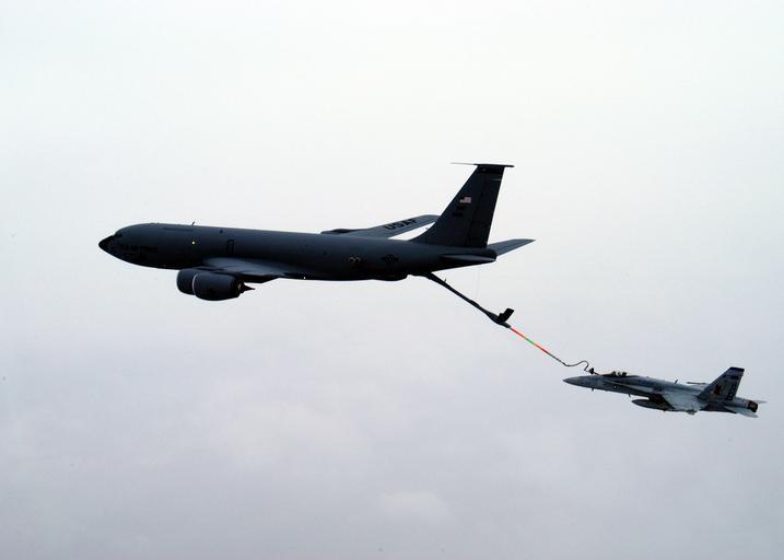 Keywords: US Navy 031114-N-3799S-004 An F-A 18 Hornet refuels.jpg en North Arabian Sea Nov 14 2003 -- An F/A 18 Hornet assigned to the Marauders of Strike Fighter Squadron Eight Two VFA-82 refuels with a U S Air Force KC 135 Tanker VFA-82 is deployed with Carrier Air Wing One CVW-1 aboard USS Enterprise CVN 65 in the North Arabian Sea U S Navy photo by Lt j g Perry Solomon RELEASED 2003-11-14 031114-N-3799S-004 Navy http //www navy mil/view_image asp id 10628 U S Navy photo by Lt j g Perry Solomon PD-USGov-Military-Navy Aerial refueling of F/A-18 Hornet Boeing KC-135 Stratotanker Strike Fighter Squadron 82 United States Navy |