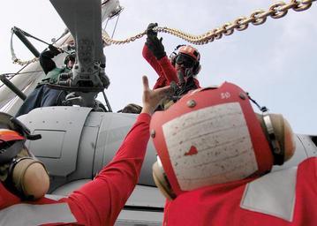 Keywords: US Navy 031207-N-0715P-046 Members assigned to USS Peleliu (LHA 5) flight deck Crash and Salvage Team and the squadron personnel assigned to the.jpg en Northern Arabian Sea Dec 7 2003 -- Members assigned to USS Peleliu LHA 5 flight deck Crash and Salvage Team and the squadron personnel assigned to the Gunbearers of Helicopter Combat Support Squadron Eleven HC-11 Search and Rescue detachment rig a crane harness onto an MH-60S Knighthawk assigned HC-11 during training operations on the flight deck The Peleliu Expeditionary Strike Group ESG is currently deployed in support of Operation Iraqi Freedom and the continued war on terrorism U S Navy photo by Photographer's Mate 2nd Class Joshua L Pritekel RELEASED 2003-12-07 031207-N-0715P-046 Navy http //www navy mil/view_image asp id 10945 U S Navy photo by Photographer's Mate 2nd Class Joshua L Pritekel PD-USGov-Military-Navy Aboard USS Peleliu LHA-5 Helicopter Combat Support Squadron 11 United States Navy