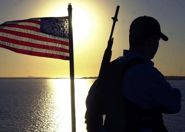 | Keywords: US Navy 040105-N-8977L-003 Operations Specialist 2nd Class Hollis Saint John from of Dallas, Texas, stands his watch prior to the amphibious assault ship.jpg en Aboard USS Boxer LHD 4 Jan 5 2004 Operations Specialist 2nd Class Hollis Saint John from of Dallas Texas stands his watch prior to the amphibious assault ship USS Boxer LHD 4 getting underway Boxer departed for the Arabian Gulf on Jan 14 2004 as part of Operation Iraqi Freedom rotation of forces after returning from a regularly scheduled deployment in August 2003 The multi-purpose amphibious assault ship and its more than 900 Sailors and 200 Marines are transporting equipment and aviation assets for the 1st Marine Expeditionary Force 1st MEF from Camp Pendleton Calif U S Navy photo by Photographer's Mate 3rd Class Johansen Laurel RELEASED 2004-01-05 040105-N-8977L-003 Navy http //www navy mil/view_image asp id 11576 U S Navy photo by Photographer's Mate 3rd Class Johansen Laurel PD-USGov-Military-Navy Aboard USS Boxer LHD-4 Operations Specialist United States Navy M14 rifle Military people with a flag of the United States Silhouettes of men Photos taken with Nikon D1 |