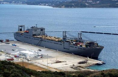 | Keywords: US Navy 040106-N-0780F-008 The Large, Medium-Speed Roll-on-Roll-off Ship USNS Benavidez (T-AKR 306) sits pierside in Souda harbor during a brief port visit.jpg en Souda Bay Crete Greece Jan 06 2004 The Large Medium-Speed Roll-on/Roll-off Ship USNS Benavidez T-AKR 306 sits pierside in Souda harbor during a brief port visit Benavidez is carrying more than 230 000 square feet of U S Army combat equipment and supplies belonging to the Ft Hood Texas based 1st Cavalry Division currently deploying for service in Iraq The ship sailed from the U S and will off-load in Kuwait The move is part of a standard rotation of forces and their equipment in and out of Iraq The 950-foot vessel is named for Medal of Honor recipient Army Master Sergeant Roy P Benavidez USNS Benavidez is one of Military Sealift Command's nineteen Large Medium-Speed Roll-on/Roll-off Ships and is part of the 28 ships in the Sealift Program Office U S Navy photo by Paul Farley RELEASED 2004-01-06 040106-N-0780F-008 Navy http //www navy mil/view_image asp id 11300 U S Navy photo by Paul Farley PD-USGov-Military-Navy Naval Support Activity Souda Bay USNS Benavidez T-AKR-306 |