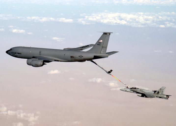 Keywords: US Navy 040107-N-3799S-003 An F-A-18 Hornet assigned to the Marauders of Strike Fighter Squadron Eight Two (VFA-82) refuels with a U.S. Air Force KC-135R Stratotanker assigned to the 380th Aerial Refueling Wing.jpg en An U S Navy F/A-18C Hornet assigned to the Marauders of Strike Fighter Squadron 82 VFA-82 refuels with a U S Air Force KC-135R Stratotanker assigned to the 380th Aerial Refueling Wing VFA-82 was deployed with Carrier Air Wing 1 CVW-1 aboard USS Enterprise CVN-65 conducting missions in support of Operation Iraqi Freedom and the continued war on terrorism 2004-01-07 040107-N-3799S-003 Navy http //www navy mil/view_image asp id 11304 U S Navy photo by Lt Perry Solomon PD-USGov-Military-Navy KC-135R Stratotanker Aerial refueling of F/A-18C Hornet Strike Fighter Squadron 82 United States Navy Aerial refueling of F/A-18 Hornet |