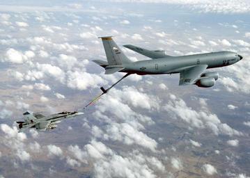 | Keywords: US Navy 040109-N-3799S-003 An F-A 18 Hornet assigned to the Marauders of Strike Fighter Squadron Eight Two (VFA 82) refuels with a U.S. Air Force KC-10A Fuel Tanker assigned to the 380th Aerial Refueling Wing.jpg en Central Command Area of Responsibility Jan 9 2004 -- An F/A 18 Hornet assigned to the Marauders of Strike Fighter Squadron Eight Two VFA 82 refuels with a U S Air Force KC-135R Stratotanker assigned to the 380th Aerial Refueling Wing VFA-82 is deployed with Carrier Air Wing One CVW-1 aboard USS Enterprise CVN 65 underway in the Arabian Gulf conducting missions in support of Operation Iraqi Freedom U S Navy photo by Lt Perry Solomon RELEASED 2004-01-09 040109-N-3799S-003 Navy http //www navy mil/view_image asp id 11326 U S Navy photo by Lt Perry Solomon PD-USGov-Military-Navy United States Navy images from Central Command Aerial refueling of F/A-18 Hornet KC-135R Stratotanker Strike Fighter Squadron 82 United States Navy |