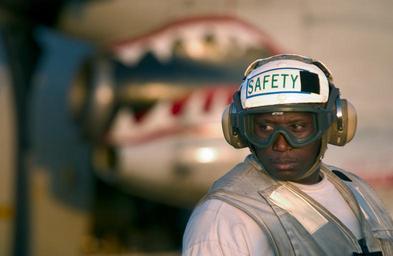 | Keywords: US Navy 040218-N-5319A-006 Aviation Ordnanceman 1st Class Ernest Felder assigned to the Knighthawks of Strike Fighter Squadron One Three Six (VFA-136), keeps a watchful eye on flight deck crew.jpg en Red Sea Feb 18 2004 Aviation Ordnanceman 1st Class Ernest Felder assigned to the Knighthawks of Strike Fighter Squadron One Three Six VFA-136 keeps a watchful eye on flight deck crew aboard USS George Washington CVN 73 as a Safety Petty Officer during flight operations The Norfolk Va -based nuclear carrier is in the Red Sea on a scheduled deployment U S Navy photo by Photographer s Mate 1st Class Brien Aho RELEASED 2004-02-18 040218-N-5319A-006 Navy http //www navy mil/view_image asp id 12021 U S Navy photo by Photographer s Mate 1st Class Brien Aho PD-USGov-Military-Navy Aviation Ordnanceman Aboard USS George Washington CVN-73 Strike Fighter Squadron 136 United States Navy |