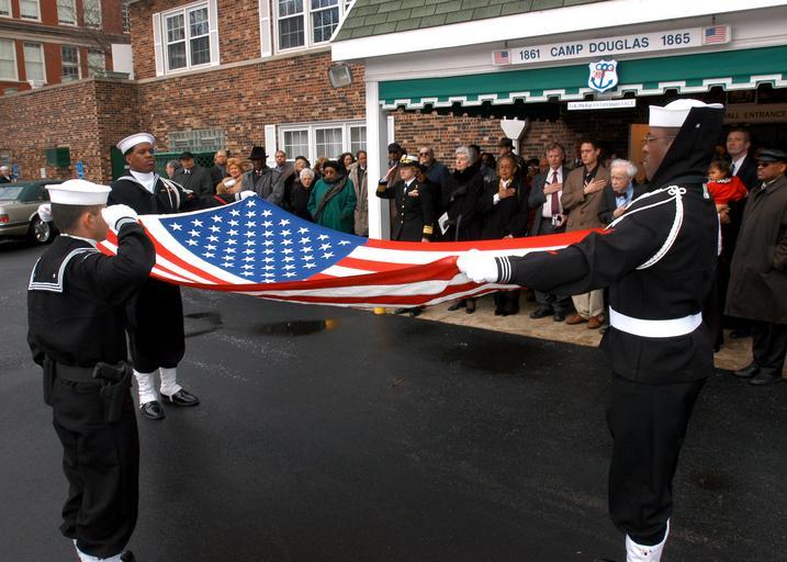 | Keywords: US Navy 040221-N-2899A-001 Sailors assigned to the Naval Station Great Lakes Funeral Detail fold the National Ensign in honor of William Sylvester White.jpg en Chicago Ill Feb 21 2004 Sailors assigned to the Naval Station Great Lakes Funeral Detail fold the National Ensign in honor of William Sylvester White Dubbed The Golden 13 he was one of the Navy s first 13 African-American officers Mr White 79 served in the Navy from 1943-1946 and earned the rank of Lieutenant junior grade Following his commission at Naval Training Station Great Lakes in 1944 he served as a public affairs officer at both Ninth Naval District and in Washington D C A 1937 graduate of the University of Chicago Law School White served as an Illinois Appellate Court Judge in the last years of his career He returned to Great Lakes several times including for the dedication of the Golden 13 Recruit In-processing Center June 5 1987 and for the 50th anniversary celebration of the Golden 13 s commissioning in 1994 He passed away on February 16 2004 in Chicago U S Navy photo by Lt Cmdr Scott M Allen RELEASED 2004-02-21 040221-N-2899A-001 Navy http //www navy mil/view_image asp id 12148 U S Navy photo PD-USGov-Military-Navy Images from US Navy location CHICAGO |