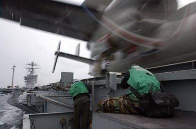 | Keywords: US Navy 040224-N-4308O-055 Photographer's Mate Airman Criag Spiering photographs an E-2C Hawkeye assigned to the ^ldquo,Bear Aces^rdquo, of Carrier Airborne Early Warning Squadron One Two Four (VAW-124), while the aircraft laun.jpg en Atlantic Ocean Feb 24 2004 Photographer's Mate Airman Craig Spiering photographs an E-2C Hawkeye assigned to the Bear Aces of Carrier Airborne Early Warning Squadron One Two Four VAW-124 while the aircraft launches from the flight deck aboard USS Harry S Truman CVN 75 The nuclear powered aircraft carrier Harry S Truman is undergoing carrier qualifications and flight deck certification off the Atlantic coast U S Navy photo by Photographer's Mate Airman Ryan O'Connor RELEASED 2004-02-24 040224-N-4308O-055 Navy http //www navy mil/view_image asp id 12262 U S Navy photo by Photographer's Mate Airman Ryan O'Connor PD-USGov-Military-Navy Aboard USS Harry S Truman CVN-75 Photographers Mate Northrop Grumman E-2C Hawkeye aircraft carrier take-offs Airborne Early Warning Squadron 124 United States Navy |