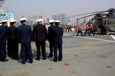 | Keywords: US Navy 040226-N-9860Y-027 People's Liberation Army (Navy) personnel watch a crash-and-salvage firefighting drill aboard USS Blue Ridge (LCC 19).jpg en Shanghai China Feb 26 2004 People's Liberation Army Navy personnel watch a crash-and-salvage firefighting drill aboard USS Blue Ridge LCC 19 during a tour of the ship Blue Ridge the command ship of U S Seventh Fleet arrived in Shanghai on a routine port visit February 24 2004 While in port Sailors and Marines from the ship took in the local culture and sights while they also interacted with their Chinese counterparts Blue Ridge is forward deployed to Yokosuka Japan U S Navy photo by Photographer's Mate Airman Apprentice Tucker M Yates RELEASED 2004-02-26 040226-N-9860Y-027 Navy http //www navy mil/view_image asp id 12224 U S Navy photo by Photographer's Mate Airman Apprentice Tucker M Yates PD-USGov-Military-Navy Unidentified locations in China Aboard USS Blue Ridge LCC-19 |