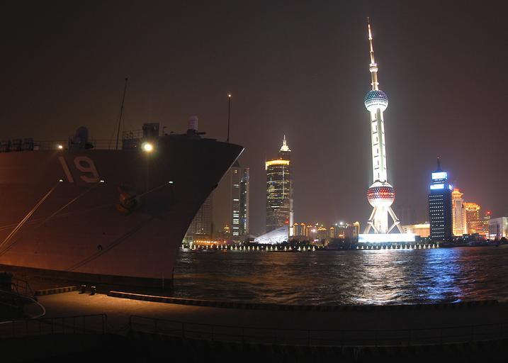 | Keywords: US Navy 040227-N-8955H-037 During a port visit to Shanghai, China, the Seventh Fleet command and control ship USS Blue Ridge (LCC 19) is moored to the Gaoyang Road pier for the first time since March 2001.jpg en Shanghai China Feb 27 2004 During a port visit to Shanghai China the Seventh Fleet command and control ship USS Blue Ridge LCC 19 is moored to the Gaoyang Road pier for the first time since March 2001 Shanghai called Hu for short is a bustling metropolis located at the mouth of the Yangtze River Connected with Jiangsu and Zhejiang provincese in the west the city is exposed to the East China Sea in the east With a total area of 6341 square kilometers about 2 448 square miles and a population of more than 13 million Shanghai is China s largest city Sailors and Marines assigned to the Blue Ridge take in an opportunity to experience the local culture and interact with their counterparts from the People s Liberation Army Navy Blue Ridge is forward deployed to Yokosuka Japan U S Navy photo by Photographer's Mate 1st Class Novia E Harrington RELEASED 2004-02-27 040227-N-8955H-037 Navy http //www navy mil/view_image asp id 12213 U S Navy photo by Photographer's Mate 1st Class Novia E Harrington PD-USGov-Military-Navy Ships at night Buildings and structures in Shanghai at night Aboard USS Blue Ridge LCC-19 |