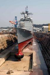 | Keywords: US Navy 040316-N-2101W-015 The guided missile cruiser USS Cowpens (CG 63) at the completion of its Ships Repair Force (SRF) dry dock period in Yokosuka, Japan.jpg en Yokosuka Japan Mar 16 2004 - The guided missile cruiser USS Cowpens CG 63 at the completion of its Ship's Repair Force SRF dry dock period in Yokosuka Japan The Ticonderoga class cruiser is forward deployed to Yokosuka U S Navy photo by Photographer's Mate 1st Class Alan Warner RELEASED 2004-03-16 040316-N-2101W-015 Navy http //www navy mil/view_image asp id 12750 U S Navy photo by Photographer's Mate 1st Class Alan Warner PD-USGov-Military-Navy USS Cowpens CG-63 United States Fleet Activities Yokosuka dry docks |