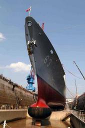 | Keywords: US Navy 040316-N-2101W-010 The guided missile cruiser USS Cowpens (CG 63) at the completion of its Ships Repair Force (SRF) dry dock period in Yokosuka, Japan.jpg en Yokosuka Japan Mar 16 2004 The guided missile cruiser USS Cowpens CG 63 at the completion of its Ship's Repair Force SRF dry dock period in Yokosuka Japan Soon the dock will be flooded and the ship will be towed to its permanent berth The Ticonderoga class cruiser is forward deployed to Yokosuka Japan U S Navy photo by Photographer's Mate 1st Class Alan Warner RELEASED 2004-03-16 040316-N-2101W-010 Navy http //www navy mil/view_image asp id 12745 U S Navy photo by Photographer's Mate 1st Class Alan Warner PD-USGov-Military-Navy USS Cowpens CG-63 United States Fleet Activities Yokosuka dry docks |
