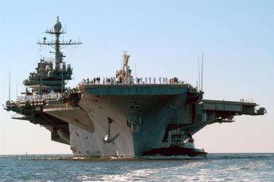 | Keywords: US Navy 040317-N-6528K-089 USS John F. Kennedy (CV 67) arrives at Naval Air Station Pensacola, Fla., for a four-day port visit after completing a Composite Training Unit Exercise (COMTUEX) in the Gulf of Mexico.jpg en Pensacola Fla Mar 17 2004 USS John F Kennedy CV 67 arrives at Naval Air Station Pensacola Fla for a four-day port visit after completing a Composite Training Unit Exercise COMTUEX in the Gulf of Mexico COMPTUEX is an intermediate level exercise designed to forge the strike group into a cohesive fighting team and is a critical step in pre-deployment training During COMPTUEX more than a dozen ships and Carrier Air Wing Seventeen CVW-17 embarked on Kennedy conducted war game exercises using training ranges along the East Coast of the U S and the Gulf of Mexico The exercise took advantage of existing ranges under the Navy s comprehensive Training Resource Strategy TRS These ranges offer training facilities and realistic simulations better preparing U S Navy ships and Sailors to participate in the Global War on Terrorism U S Navy photo by Larry Kachelhofer RELEASED Mar 17 2004 040317-N-6528K-089 Navy http //www navy mil/view_image asp id 12774 U S Navy photo by Larry Kachelhofer PD-USGov-Military-Navy Aboard USS John F Kennedy CV-67 Naval Air Station Pensacola |