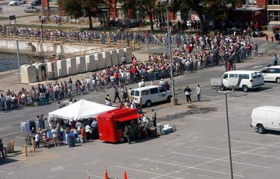 MAKE A MEME View Large Image Navy 040319-N-0000K-104 Thousands of people wait in line for their turn to embark on a tour of the aircraft carrier USS John F. Kennedy (CV 67).jpg en Naval Air Station Pensacola Fla Mar 19 2004 - Thousands of people wait in line for their ...