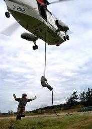 | Keywords: US Navy 040408-N-8921O-013 Chief Sonar Technician Todd Voorhis, of El Paso, Texas, signals to a team member assigned to Explosive Ordnance Disposal Mobile Unit Eleven (EODMU-11) that he is clear of the drop zone after completin.jpg en Oak Harbor Wash Apr 08 2004 - Chief Sonar Technician Todd Voorhis of El Paso Texas signals to a team member assigned to Explosive Ordnance Disposal Mobile Unit Eleven EODMU-11 that he is clear of the drop zone after completing his fast rope repel out of a UH-3H Sea King helicopter EODMU-11 is conducting fast rope and rappelling exercises to help prepare the team for real combat situations U S Navy photo by Photographer's Mate Airman Chris Otsen RELEASED 2004-04-08 040408-N-8921O-013 Navy http //www navy mil/view_image asp id 13173 U S Navy photo by Photographer's Mate Airman Chris Otsen PD-USGov-Military-Navy Naval Air Station Whidbey Island United States Navy Explosive Ordnance Disposal Fast roping UH-3H Sea King Explosive Ordnance Disposal Mobile Unit 11 |