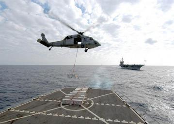 | Keywords: US Navy 040423-N-4190W-002 An MH-60S Knighthawk helicopter hovers above the flight deck of USS Seattle (AOE 3).jpg en Atlantic Ocean Apr 23 2004 An MH-60S Knighthawk helicopter hovers above the flight deck of USS Seattle AOE 3 as it transports ammunition to USS John F Kennedy CV 67 background during a vertical replenishment Kennedy is making final preparations before deploying on a scheduled six-month deployment to the Mediterranean Sea U S Navy photo by Photographer's Mate 3rd Class Chris Weibull RELEASED 2004-04-23 040423-N-4190W-002 Navy http //www navy mil/view_image asp id 13611 U S Navy photo by Photographer's Mate 3rd Class Chris Weibull PD-USGov-Military-Navy Aboard USS John F Kennedy CV-67 |