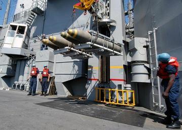 | Keywords: US Navy 040423-N-4190W-014 Deck department personnel aboard the fast combat support ship USS Seattle (AOE 3) transport ammunition to USS John F. Kennedy (CV 67).jpg en Atlantic Ocean Apr 23 2004 - Deck department personnel aboard the fast combat support ship USS Seattle AOE 3 transport ammunition to USS John F Kennedy CV 67 during an underway replenishment Kennedy is making final preparations before deploying on a scheduled six-month deployment to the Mediterranean Sea U S Navy photo by Photographer's Mate 3rd Class Chris Weibull RELEASED 2004-04-23 040423-N-4190W-014 Navy http //www navy mil/view_image asp id 13616 U S Navy photo by Photographer's Mate 3rd Class Chris Weibull PD-USGov-Military-Navy Cargo in transfer underway replenishment Aboard USS John F Kennedy CV-67 |