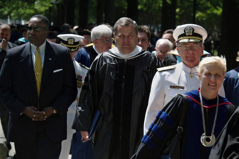 | Keywords: US Navy 040508-N-2383B-031 Adm. Vern Clark, Chief of Naval Operations (CNO) walks between Dr. Roseann Runte, President of Old Dominion University (ODU) and retired U.S. Navy Capt. F. Richard Whalen, Director of Military Activit.jpg en Norfolk Va May 8 2004 - Adm Vern Clark Chief of Naval Operations CNO walks between Dr Roseann Runte President of Old Dominion University ODU and retired U S Navy Capt F Richard Whalen Director of Military Activities for ODU as they lead the academic processional at ODU's Spring Commencement Ceremony The CNO was the guest speaker for the 100th Commencement Exercise at Old Dominion University and for the Spring Commissioning Ceremony of the Naval Reserve Officer's Training Corps NROTC of Hampton Roads held at Norfolk State University U S Navy photo by Chief Photographer's Mate Johnny Bivera RELEASED 2004-05-08 040508-N-2383B-031 Navy http //www navy mil/view_image asp id 13908 U S Navy photo by Chief Photographer's Mate Johnny Bivera PD-USGov-Military-Navy Naval Station Norfolk Vern Clark |