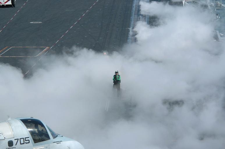Keywords: US Navy 040603-N-9769P-055 An Aviation Boatswain's Mate caught in the middle of a cloud of steam, stands on one of four aircraft catapults aboard USS John C. Stennis (CVN 74), waiting for aircraft to prepare for launch.jpg en Gulf of Alaska Jun 3 2004 - An Aviation Boatswain's Mate caught in the middle of a cloud of steam stands on one of four aircraft catapults aboard USS John C Stennis CVN 74 waiting for aircraft to prepare for launch Stennis and embarked Carrier Air Wing Fourteen CVW-14 are on a regularly scheduled deployment participating in exercise Northern Edge U S Navy photo by Photographer's Mate 2nd Class Jayme Pastoric RELEASED 2004-06-03 040603-N-9769P-055 Navy http //www navy mil/view_image asp id 14692 U S Navy photo by Photographer's Mate 2nd Class Jayme Pastoric PD-USGov-Military-Navy Aviation Boatswain's Mates Aboard USS John C Stennis CVN-74 Northern Edge 2004 Steam catapults Steam clouds |