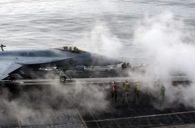 | Keywords: US Navy 040613-N-0511C-001 Flight deck personnel await the launch of an F-A-18E Super Hornet assigned to the Eagles of Strike Fighter Squadron One One Five (VFA-115) aboard the aircraft carrier USS John C. Stennis (CVN 74).jpg en Gulf of Alaska Jun 13 2004 - Flight deck personnel await the launch of an F/A-18E Super Hornet assigned to the Eagles of Strike Fighter Squadron One One Five VFA-115 aboard the aircraft carrier USS John C Stennis CVN 74 Stennis and embarked Carrier Air Wing Fourteen CVW-14 are at sea on a regularly scheduled deployment Stennis is one of seven aircraft carriers involved in Summer Pulse 2004 Summer Pulse 2004 is the simultaneous deployment of seven aircraft carrier strike groups CSGs demonstrating the ability of the Navy to provide credible combat power across the globe in five theaters with other U S allied and coalition military forces Summer Pulse is the Navy's first deployment under its new Fleet Response Plan FRP U S Navy photo by Photographer's Mate Airman David A Cochran RELEASED For more information go to <a href http //www cffc navy mil/summerpulse04 htm Target _BLANK >www cffc navy mil/summerpulse04 htm</a> 2004-06-13 040613-N-0511C-001 Navy http //www navy mil/view_image asp id 15087 U S Navy photo by Photographer's Mate Airman David A Cochran PD-USGov-Military-Navy Aboard USS John C Stennis CVN-74 Strike Fighter Squadron 115 United States Navy |