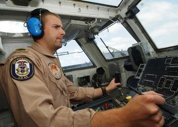 | Keywords: US Navy 040614-N-4374S-008 Lt. Ryan Meeuf, Landing Signal Officer (LSO), mans the LSO console during flight quarters.jpg en Atlantic Ocean Jun 14 2004 - Lt Ryan Meeuf Landing Signal Officer LSO assigned to the Proud Warriors of Helicopter Anti-submarine Squadron Light 42 HSL-42 Detachment Eight mans the LSO console during flight quarters aboard the guided missile cruiser USS Vicksburg CG 69 Vicksburg is assigned to the John F Kennedy Carrier Strike Group CSG currently participating in a Combined Joint Task Force Exercise CJTFEX Kennedy is one of seven aircraft carriers involved in the Summer Pulse 2004 Exercise Summer Pulse 2004 is the simultaneous deployment of seven aircraft strike groups CSGs demonstrating the ability of the Navy to provide credible combat across the globe in five theaters with other U S allied and coalition military forces Summer Pulse is the Navy's first deployment under its new Fleet Response Plan FRP U S Navy photo by Photographer's Mate 2nd Michael Sandberg RELEASED For more information go to <a href http //www cffc navy mil/summerpulse04 htm Target _BLANK >www cffc navy mil/summerpulse04 htm</a> 2004-06-14 040614-N-4374S-008 Navy http //www navy mil/view_image asp id 15234 U S Navy photo by Photographer's Mate 2nd Michael Sandberg PD-USGov-Military-Navy Landing Signal Officer USS Vicksburg CG-69 |
