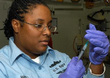 | Keywords: US Navy 040621-N-2382W-051 Hospital Corpsman 2nd Class Maaza Marcell, of New Orleans, La., fills a syringe with the anthrax vaccine.jpg en Mediterranean Sea June 21 2004 Hospital Corpsman 2nd Class Maaza Marcell of New Orleans La fills a syringe with the anthrax vaccine during a shot call aboard the amphibious assault ship USS Kearsarge LHD 3 Kearsarge is surge deployed to transport elements of the 24th Marine Expeditionary Unit MEU to the Central Command Area of Responsibility in support of Operation Iraqi Freedom OIF and the global war on terrorism U S Navy photo by Photographer s Mate Airman Finley Williams RELEASED 2004-06-21 040621-N-2382W-051 Navy http //www navy mil/view_image asp id 15427 U S Navy photo by Photographer s Mate Airman Finley Williams PD-USGov-Military-Navy Aboard USS Kearsarge LHD-3 Hospital Corpsman Anthrax vaccines |