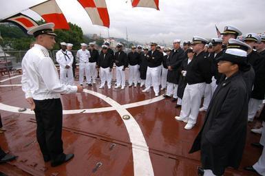 | Keywords: US Navy 040706-N-1693W-001 U.S. Navy Sailors assigned to guided missile cruiser USS Cowpens (CG 63) tour the flight deck of the Russian Destroyer Admiral Vinogradov (DDG 572) during a five day port visit.jpg en Vladivostok Russia July 6 2004 - U S Navy Sailors assigned to guided missile cruiser USS Cowpens CG 63 tour the flight deck of the Russian Destroyer Admiral Vinogradov DDG 572 during a five day port visit U S Navy photo by Photographer's Mate 3rd Class Lowell Whitman RELEASED 2004-07-06 040706-N-1693W-001 Navy http //www navy mil/view_image asp id 15828 U S Navy photo by Photographer's Mate 3rd Class Lowell Whitman PD-USGov-Military-Navy Images from US Navy location Vladivostok Russian Federation |