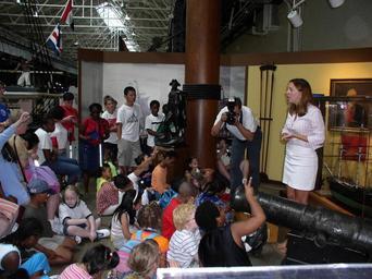 | Keywords: US Navy 040712-N-9784H-001 Navy Museum educator Ms. Karin Hill explains life in the Age of Sail Navy to 70 members of Camp Lighthouse, a day camp for blind and visually impaired children.jpg en Washington D C Navy Yard July 12 2004 Navy Museum educator Ms Karin Hill explains life in the Age of Sail Navy to 70 members of Camp Lighthouse a day camp for blind and visually impaired children During their tour of the Navy Museum they were able to have hands on experience with old ships wheels cannons and reproduction uniforms Columbia Lighthouse for the Blind hosts three Camp Lighthouse summer programs each year which encourage these youths to develop new skills and expand their horizons Photo courtesy Navy Historical Center Patrick Hill RELEASED 2004-07-12 040712-N-9784H-001 Navy http //www navy mil/view_image asp id 16156 U S Navy photo PD-USGov-Military-Navy U S Navy Museum |