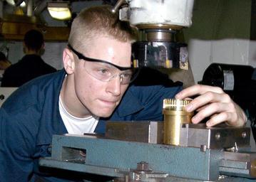 | Keywords: US Navy 040722-N-1238B-028 Machinery Repairman Fireman Richard Henegar, assigned to the amphibious assault ship USS Wasp (LHD 1) inspects a piece of metal on a milling machine.jpg en Indian Ocean July 22 2004 - Machinery Repairman Fireman Richard Henegar assigned to the amphibious assault ship USS Wasp LHD 1 inspects a piece of metal on a milling machine before making his final cut Wasp is currently on deployment as part of Expeditionary Strike Group two ESG-2 in support of Operation Iraqi Freedom OIF U S Navy photo by Photographer s Mate Airman Toni N Burton RELEASED 2004-07-22 040722-N-1238B-028 Navy http //www navy mil/view_image asp id 16832 U S Navy photo by Photographer s Mate Airman Toni N Burton PD-USGov-Military-Navy Aboard USS Wasp LHD-1 |