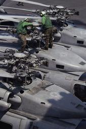 | Keywords: US Navy 040803-N-5781F-015 Aviation Structural Mechanics assigned to the Warlords of Helicopter Anti-Submarine Squadron Light Five One (HSL-51).jpg en Pacific Ocean Aug 3 2004 - Aviation Structural Mechanics assigned to the Warlords of Helicopter Anti-Submarine Squadron Light Five One HSL-51 inspect rotors blades on HH-60H Seahawks prior to flight operations aboard the aircraft carrier USS Kitty Hawk CV 63 Seahawks can provide all-weather undersea warfare and anti-ship surveillance targeting search-and-rescue and logistics operations The Kitty Hawk Strike Group is one of seven carrier strike groups CSGs involved in Summer Pulse 2004 which is the deployment of seven carrier strike groups CSGs demonstrating the ability of the Navy to provide credible combat capability across the globe in five theaters with other U S allied and coalition military forces Summer Pulse is the Navy s first deployment under its new Fleet Response Plan FRP U S Navy photo by Photographer's Mate Airman Bo J Flannigan RELEASED For more information go to <a href http //www cffc navy mil/summerpulse04 htm Target _BLANK >www cffc navy mil/summerpulse04 htm</a> 2004-08-03 040803-N-5781F-015 Navy http //www navy mil/view_image asp id 16813 U S Navy photo by Photographer's Mate Airman Bo J Flannigan PD-USGov-Military-Navy Flight deck of USS Kitty Hawk CV-63 SH-60B Seahawk Helicopter Maritime Strike Squadron 51 United States Navy |