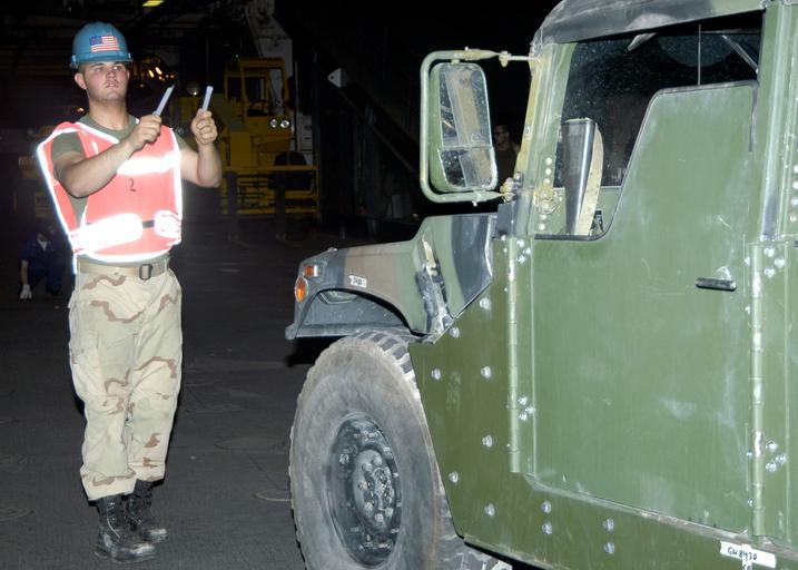 | Keywords: US Navy 040808-N-1238B-047 Lance Cpl. Jesse Maclag directs a Humvee aboard the amphibious assault ship USS Wasp (LHD 1).jpg en Ash Shuaybah Kuwait Aug 8 2004 Lance Cpl Jesse Maclag directs a Humvee aboard the amphibious assault ship USS Wasp LHD 1 The Humvee returned to Wasp along with Marines assigned to the 22nd Marine Expeditionary Unit MEU Special Operations Capable after a four-month mission in Afghanistan Wasp and the 22nd MEU are deployed as part of Expeditionary Strike Group Two ESG-2 operating in the 5th Fleet area of responsibility U S Navy photo by Photographer s Mate Airman Toni N Burton RELEASED 2004-08-08 040808-N-1238B-047 Navy http //www navy mil/view_image asp id 16942 U S Navy photo by Photographer s Mate Airman Toni N Burton PD-USGov-Military-Navy United States Navy in Ash Shuaybah Kuwait |