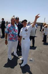 | Keywords: US Navy 040811-N-4776G-071 USS Ronald Reagan (CVN 76) Command Master Chief Kathy Hansen gives a Pearl Harbor survivor a tour of the ship^rsquo,s flight deck.jpg en San Diego Calif Aug 11 2004 - USS Ronald Reagan CVN 76 Command Master Chief Kathy Hansen gives a Pearl Harbor survivor a tour of the ship s flight deck The guests were given a special tour of the Navy's newest nuclear powered aircraft carrier during a visit to present a World War II WWII book autographed by Pearl Harbor survivors to the ship s commanding officer The ship arrived in its new homeport of Naval Air Station North Island San Diego after participating in exercises in support of Summer Pulse 2004 U S Navy photo by Photographer's Mate Airman Kathleen Gorby RELEASED 2004-08-11 040811-N-4776G-071 Navy http //www navy mil/view_image asp id 17136 U S Navy photo by Photographer's Mate Airman Kathleen Gorby PD-USGov-Military-Navy Aircraft carriers moored at Naval Air Station North Island Aboard USS Ronald Reagan CVN-76 |