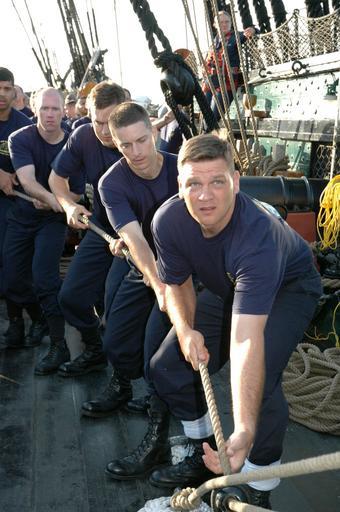 | Keywords: US Navy 040824-N-0335C-005 A group of chief petty officer selectees (CPO) haul a line while setting the jib sail aboard the USS Constitution.jpg en Boston Mass Aug 24 2004 A group of chief petty officer selectees CPO haul a line while setting the jib sail aboard USS Constitution Constitution is the only squared rigged ship in the U S Navy and the oldest commissioned warship afloat in the world Every summer 300 Navy CPO selectees learn to set sails aboard the historic vessel U S Navy photo by Journalist 2nd Class Matt Chabe RELEASED 2004-08-24 040824-N-0335C-005 Navy http //www navy mil/view_image asp id 17214 U S Navy photo by Journalist 2nd Class Matt Chabe PD-USGov-Military-Navy USS Constitution in 21st century Military in Massachusetts Teamwork In United States Navy |