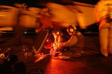 | Keywords: US Navy 040831-N-5781F-046 An E-2C Hawkeye is directed across the flight deck aboard the aircraft carrier USS Kitty Hawk (CV 63), while personnel prepare for nighttime flight operations.jpg en Pacific Ocean Aug 31 2004 - An E-2C Hawkeye is directed across the flight deck aboard the aircraft carrier USS Kitty Hawk CV 63 while personnel prepare for nighttime flight operations Flight operations are conducted around the clock to ensure optimum proficiency for pilots squadrons and ship's personnel Kitty Hawk is currently under way in the 7th Fleet area of responsibility AOR demonstrating power projection and sea control as the world's only permanently forward-deployed aircraft carrier operating from Yokosuka Japan U S Navy photo by Photographer's Mate Airman Bo J Flannigan RELEASED 2004-08-31 040831-N-5781F-046 Navy http //www navy mil/view_image asp id 17483 U S Navy photo by Photographer's Mate Airman Bo J Flannigan PD-USGov-Military-Navy Aboard USS Kitty Hawk CV-63 Northrop Grumman E-2C Hawkeye on flight decks |