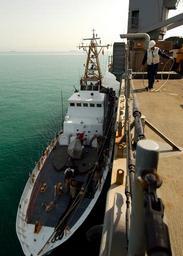 | Keywords: US Navy 040921-N-7034S-001 The U.S. Coast Guard Island-class Cutter Maui (WPB 1304), moors along side the dock landing ship USS Harpers Ferry (LSD 49) to conduct a replenishment at sea (RAS).jpg en Arabian Gulf Sept 21 2004 The U S Coast Guard Island-class Cutter Maui WPB 1304 moors along side the dock landing ship USS Harpers Ferry LSD 49 to conduct a replenishment at sea RAS Maui and Harpers Ferry are part of USS Essex LHD 2 Expeditionary Strike Group ESG on deployment in the Northern Arabian Gulf in support of Operation Iraqi Freedom OIF U S Navy photo by Photographer's Mate 2nd Class Samuel W Shavers RELEASED 2004-09-21 040921-N-7034S-001 Navy http //www navy mil/view_image asp id 17963 U S Navy photo by Photographer's Mate 2nd Class Samuel W Shavers PD-USGov-Military-Navy Underway replenishment USCGC Maui WPB-1304 Aboard USS Harpers Ferry LSD-49 |