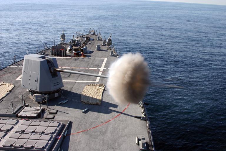 | Keywords: US Navy 040922-N-4158S-001 The guided missile destroyer USS Winston S. Churchill (DDG 81) fires its MK-45 Mod 4, 5-inch-62-cal, lightweight gun mount during an exercise in the Virginia Capes Operating area in the Atlantic Ocean.jpg en Atlantic Ocean Sept 22 2004 The guided missile destroyer USS Winston S Churchill DDG 81 fires its MK-45 Mod 4 5-inch/62-cal lightweight gun mount during an exercise in the Virginia Capes Operating area in the Atlantic Ocean Churchill is the only U S Navy vessel in active service named after a foreign dignitary The MK-45 Mod 4 is the latest version of the MK-45 gun mount designed to be used with the Mark 171 Extended Range Guided Munition ERGM for over-the-horizon range and improved lethality The gun mount modifications include a new 62-caliber barrel an Ammunition Recognition System a Gun/ERGM interface and a new control system Churchill is named in honor of Sir Winston Spencer Leonard Churchill 1874-1965 best known for his courageous leadership as the British Prime Minister during World War II U S Navy photo by Lt j g Caleb Swigart RELEASED 2004-09-22 040922-N-4158S-001 Navy http //www navy mil/view_image asp id 22657 U S Navy photo by Lt j g Caleb Swigart PD-USGov-Military-Navy 5 /54 caliber Mark 45 gun firing USS Winston S Churchill DDG-81 |