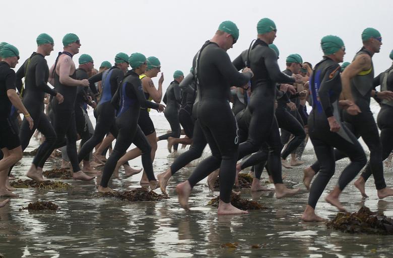 | Keywords: US Navy 040925-N-7949W-012 Superfrog Triathlon competitors run through the kelp toward the ocean at the beginning of the swim portion of the race.jpg en Naval Amphibious Base Coronado Calif Sept 25 2004 - Superfrog Triathlon competitors run through the kelp toward the ocean at the beginning of the swim portion of the race The 26th annual Naval Special Warfare Superfrog Triathlon was held along the Silver Strand Highway 75 and on Naval Amphibious Base Coronado Calif Sept 25 2004 Designed by Navy SEALs in 1978 the Superfrog is the first and longest running half-Ironman distance Triathlon The course incorporates a Half-Ironman distance circuit-style route consisted of a 1 2-mile open ocean swim 54-mile bike ride and 13 1-mile run Superfrog is open to individuals and relay teams Teams must consist of military DoD civilians family members and sponsored guests U S Navy photo by Photographer s Mate 1st Class Daniel Woods RELEASED 2004-09-25 040925-N-7949W-012 Navy http //www navy mil/view_image asp id 17942 U S Navy photo by Photographer s Mate 1st Class Daniel Woods PD-USGov-Military-Navy Naval Amphibious Base Coronado |