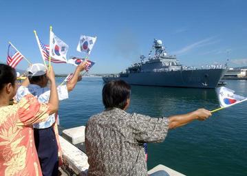 | Keywords: US Navy 041014-N-3019M-003 Family members and guests wave to Sailors aboard the Republic of Korea Ship ROKS Won San (MLS 560) as she enters Pearl Harbor, Hawaii, for a three-day port visit.jpg en Pearl Harbor Hawaii Oct 14 2004 - Family members and guests wave to Sailors aboard the Republic of Korea Ship ROKS Won San MLS 560 as she enters Pearl Harbor Hawaii for a three-day port visit Won San along with ROKS Yangmanchoon DDG 973 and ROKS Wha Chung AOE 59 are on a three-month training deployment and goodwill tour under the command of Commander Cruise Training Force Rear Adm Sung-Gyue Oh U S Navy photo by Journalist Seaman Ryan C McGinley RELEASED 2004-10-14 041014-N-3019M-003 Navy http //www navy mil/view_image asp id 18231 U S Navy photo by Journalist Seaman Ryan C McGinley PD-USGov-Military-Navy Foreign warships at Pearl Harbor Wonsan class minelayer |